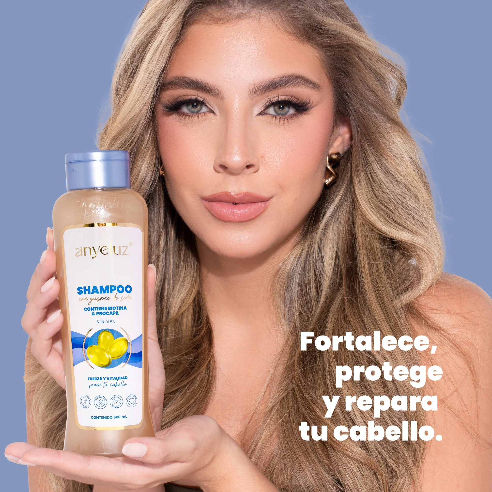 Protege y revitaliza tu cabello con el Shampoo Gusano de Seda Anyeluz®, diseñado para aumentar la elasticidad, suavidad y fuerza de la fibra capilar. Su fórmula exclusiva crea una película protectora que evita la deshidratación y protege contra los daños de productos alcalinos presentes en cosméticos, dejando tu cabello brillante, sedoso y saludable.