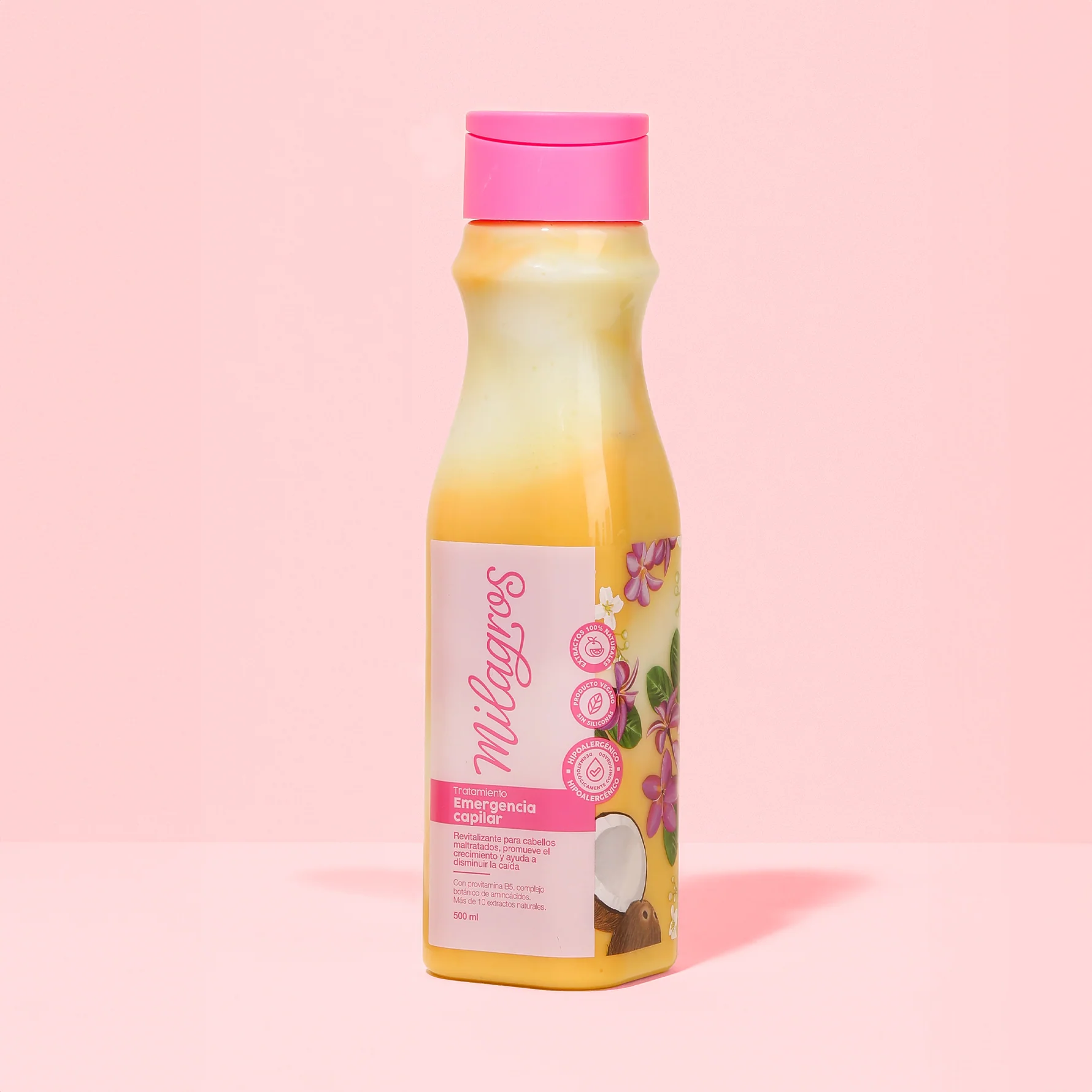 El Tratamiento Emergencia Capilar Milagros es un tratamiento rápido y poderoso que revitaliza, repara y fortalece el cabello en solo 20 minutos. Ayuda a disminuir la caída, promueve el crecimiento y deja el cabello suave, brillante y saludable desde la primera aplicación.